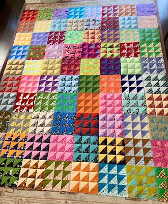 Then I sew three units together to have 30 large sections of 6 blocks.