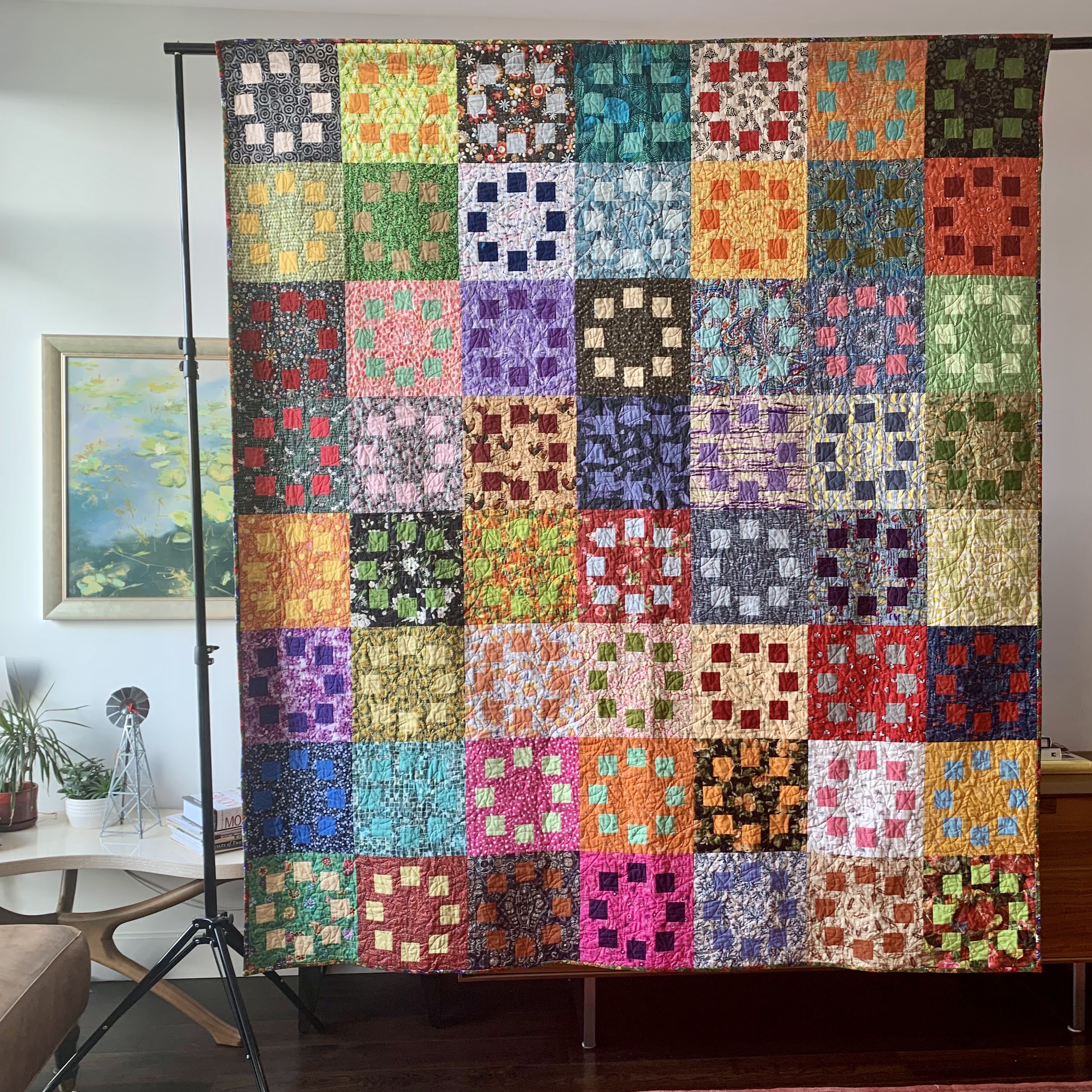 I changed the cutting and piecing so there was a larger uncut center section so it was a less interrupted visual.