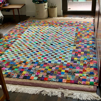 I love a 16-patch. Such straightforward construction and a strong grid that holds it with a wild variety of fabrics.