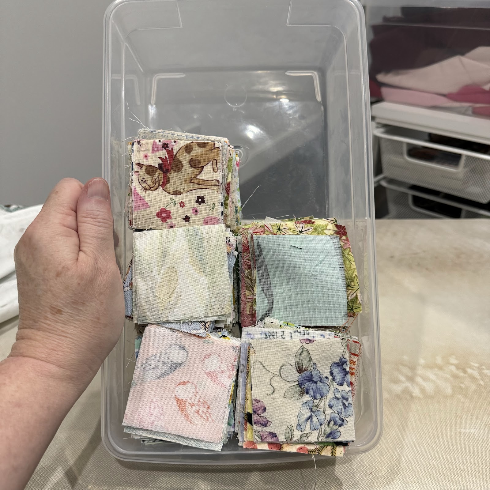 A summer quilt! Made from my lights/neutrals bin of 2 1/2 inch squares.
